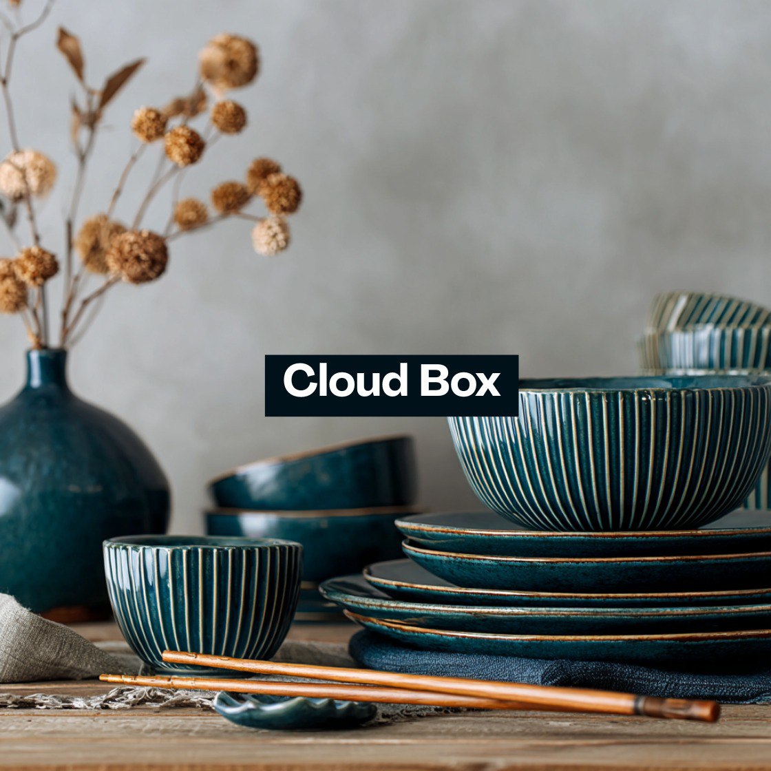 Cloud Box is the cloud horizon of Pottique, where the full Peak Box collection is joined by twelve oval fish dishes. Every piece is born in the kiln with Blue Kiln Glaze that recalls a calm sea. The set gathers everything needed for a grand dinner: from small plates to deep bowls and spoons. The ceramic washes easily in the dishwasher and heats in the microwave. This is the choice for those who want the table to breathe freedom and beauty.
